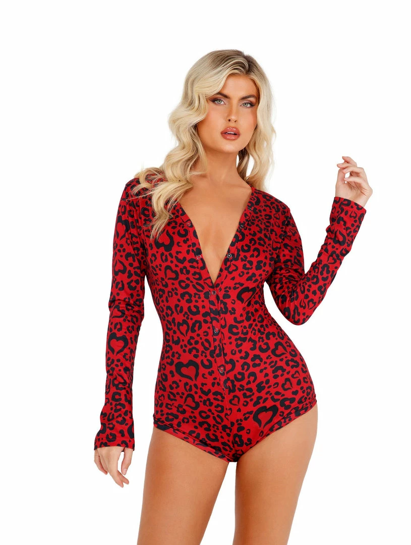 Roma Cozy & Comfy Heart Shaped Leopard Romper Lingerie