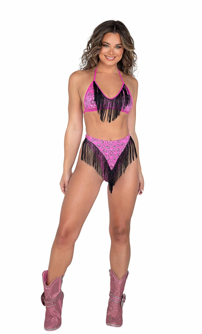 Roma Metallic Printed Bikini Top With Fringe Detail Rave/Festival Wear