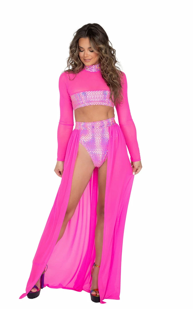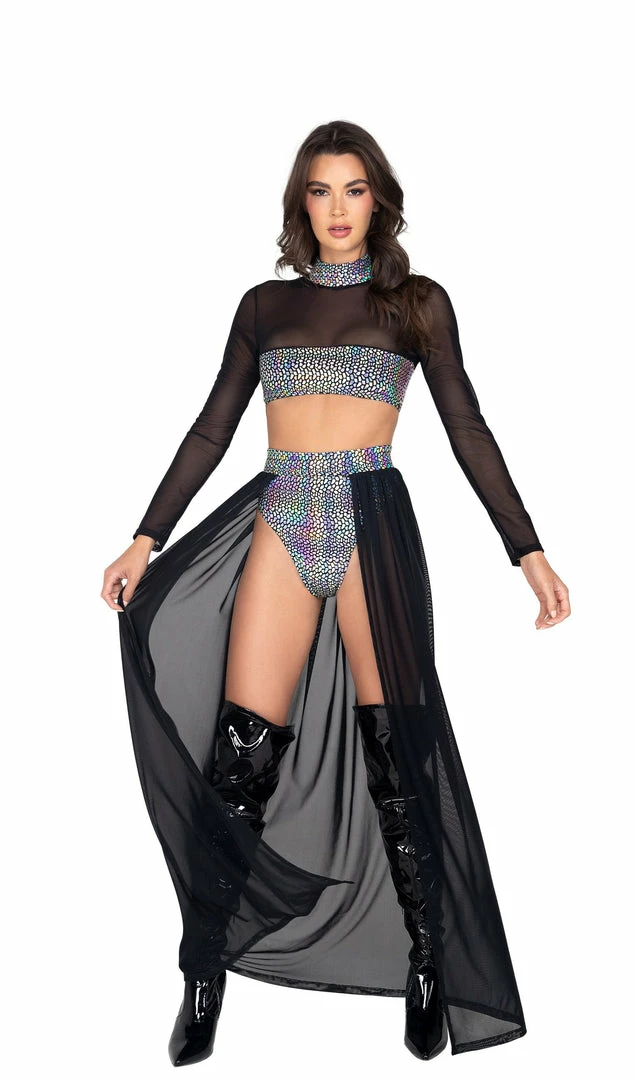 Roma Open Long Sheer Skirt With Waisted Band Rave/Festival Wear