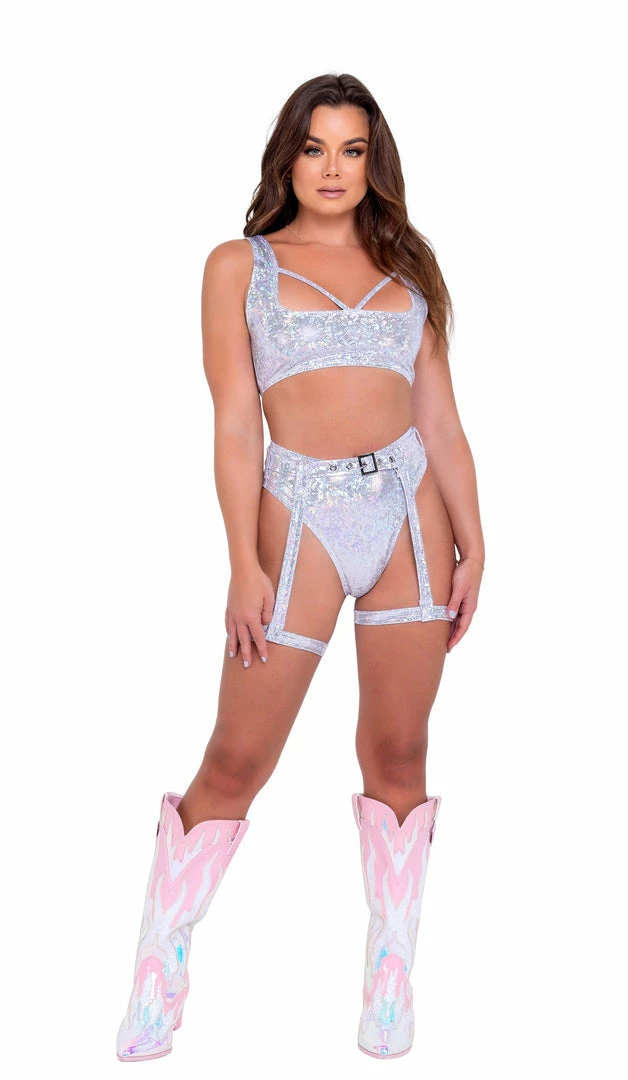 Shimmer Crop Top with Strap Detail